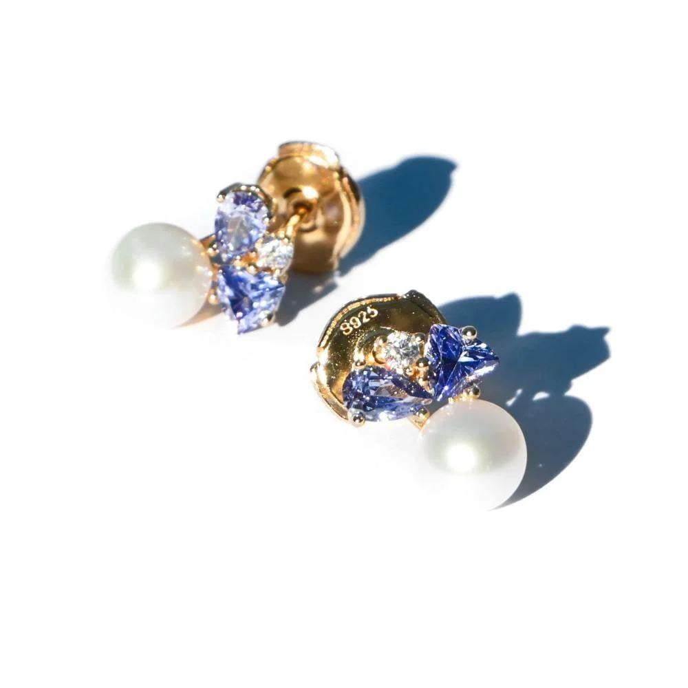 تألقي بجمال لافت مع أقراط اللؤلؤ الطبيعي المستزرع المصنوعة بدقة وحرفية. تمنحك هذه الأقراط لمسة من الأناقة الكلاسيكية مع مزيج من الذهب عيار 18 و التنزانيت الفاخر. اخترنا لك احد افضل حلقان و اقراط اذن نسائية فاخرة من متجر مجوهرات بي في السعودية.